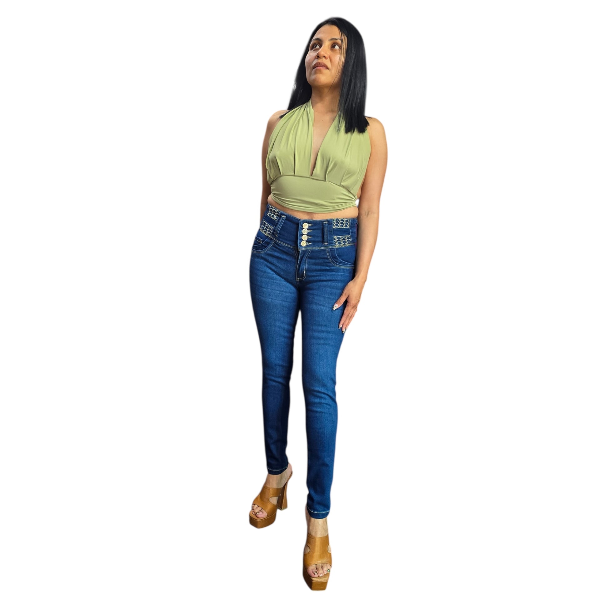 Colombian jeans in light blue wash with butt-lifting design. Made in Colombia with premium stretch fabric.